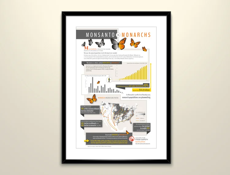An infographic and animation for a public awareness campaign highlighting the effect that Monsanto has had on the dwindling Monarch population in the United States.